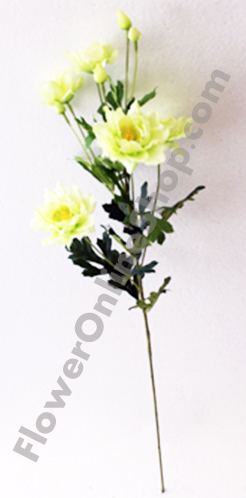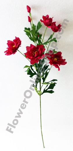 ดอกไม้ประดิษฐ์ โบตั๋น บานเย็น แซมใบ x 18