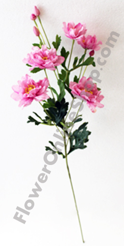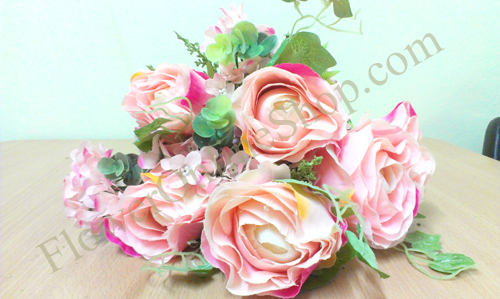 ดอกไม้ประดิษฐ์ โบตั๋น ชมพู แซมใบ x 18