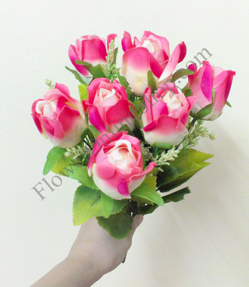 โบตั๋น+ดอกแซม+ใบเข็ม x36 สีชมพูเข้ม |
