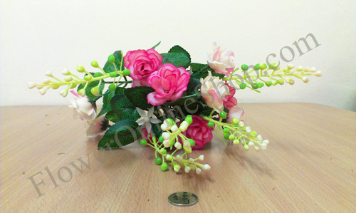 ดอกไม้ประดิษฐ์ โบตั๋น+ดอกแซม+ใบเข็ม ชมพูอ่อน x 36