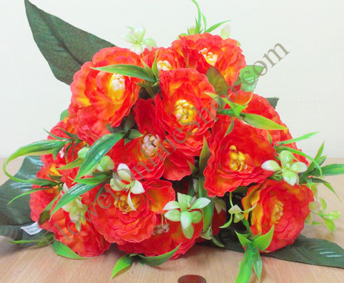 ดอกไม้ประดิษฐ์ โบตั๋น แสด แซมใบ x 18