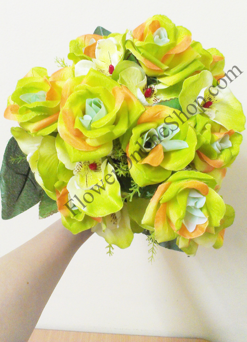 ดอกไม้ประดิษฐ์ กุหลาบเขียว+กล้วยไม้เขียวขาว x 22