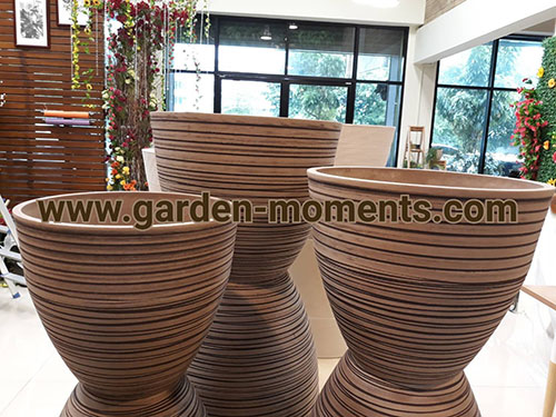 กระถางต้นไม้ ทรงโรมัน จัดดอกไม้ทรงสูง ลายถังไม้ สีน้ำตาล