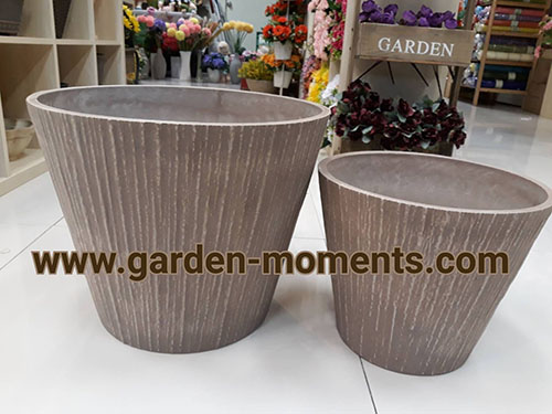 กระถางต้นไม้ ทรงโมเดิร์นกลม ลายถังไม้ XXL สีน้ำตาลเข้ม